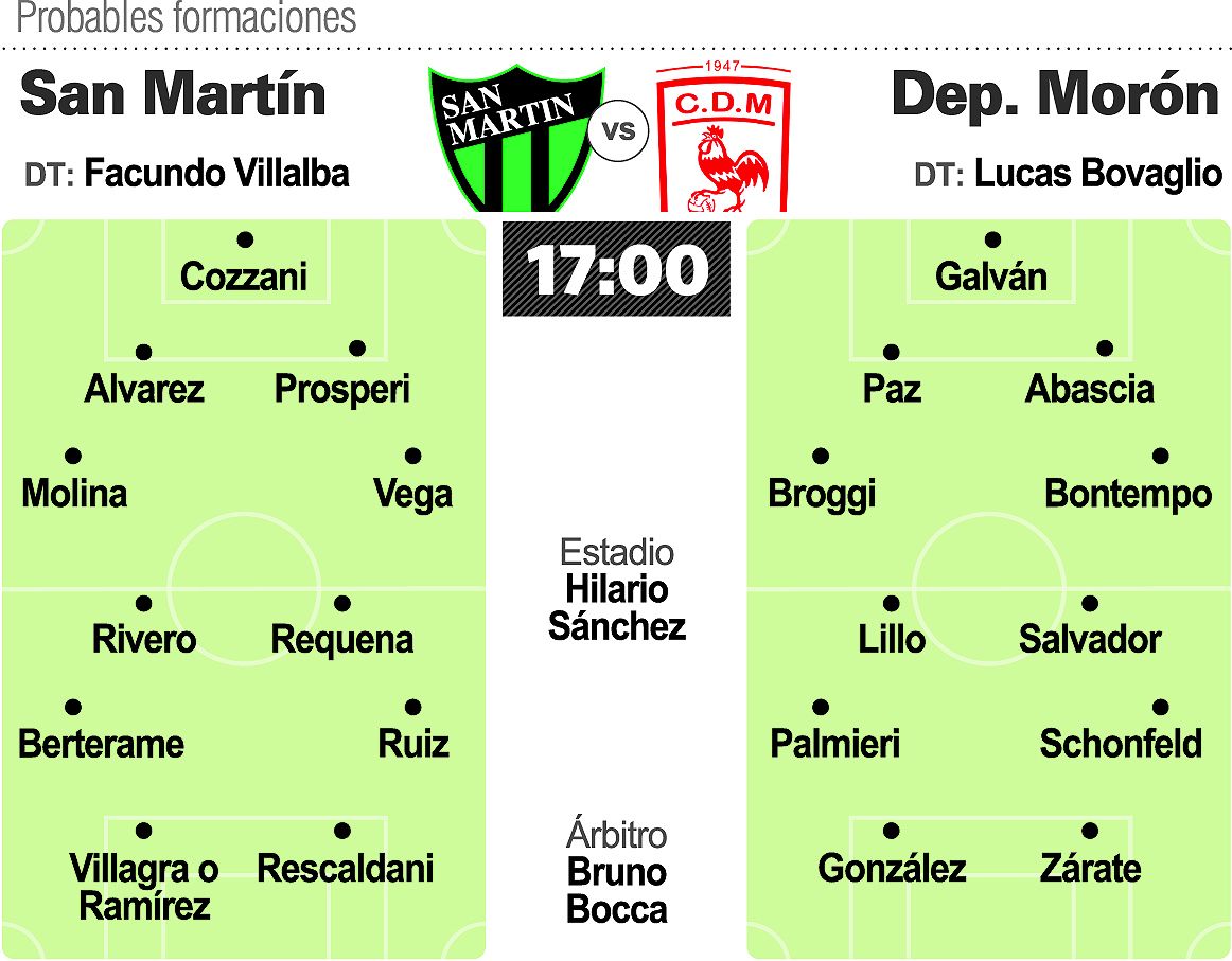 Del otro lado estará el Deportivo Morón de Lucas Bovaglio que viene de perder como local en la fecha pasada y ahora necesita un triunfo para consolidar su presencia entre los clasificados al Reducido. Con un esquema sencillo que prioriza el orden defensivo por encima de todo, el Gallito tratará de hacerse fuerte en San Juan sabiendo que en la recta final, un error puede ser condena. San Martín necesita ganarlo. Morón también. Sin demasiadas especulaciones, sabiendo que el punto no suma para ninguno de los dos, la promesa de un partido abierto, con opciones y apostando a ganador es más que creíble.