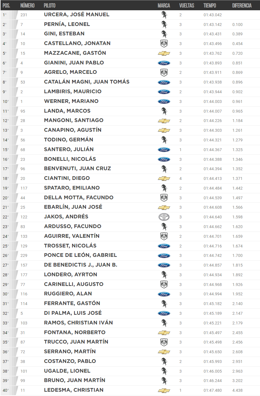 Della Motta partirá en el 7mo lugar de la segunda serie, que comenzará a las 10.05 y que tendrá en el primer puesto de partida a Leonel Pernía (Torino#7), quien todavía cuenta con alguna chance matemática para coronarse campeón.