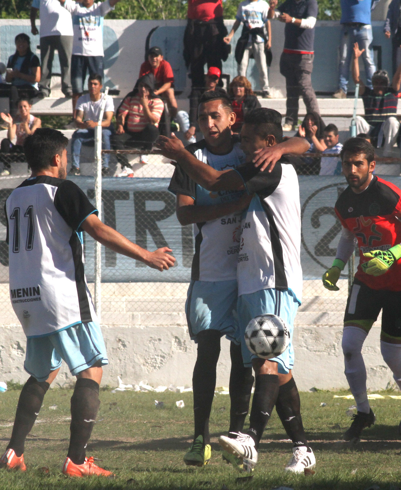 Era el partido para Del Bono. Era el que querían ganar, el que servía para demostrarse y demostrar que la gran campaña en este regreso al Federal B no era casualidad y que con las adversidades de tener afuera a jugadores clave como Sergio Araoz o el Fino Balmaceda, el Bodeguero siempre puede. Y lo lograron. Sin que les sobre nada, con lo justo, contra un durísimo rival como San Martín de Rodeo que llegó como líder y se fue masticando impotencia porque dejó esa posición pero ambos entregaron un partido intenso, durísimo, de dientes apretados y que terminó resolviéndose con un penal de Gonzalo Narvaez a los 14" del primer tiempo tras una mano de Kevin García en el área en un remate de Néstor Celán. Esa fue la mínima diferencia pero justa en favor de un Del Bono que salió presionar, a potenciar las medidas de su cancha y a no dejarle lugar al juego que propone San Martín de Rodeo, que con espacios, levanta vuelo y complica al que sea. El primer acierto de Del Bono fue ese y ahí empezó a edificar una compleja victoria. Con mucha entrega, con gran concentración, presionó de entrada nomás y antes de los 15" llegó al gol cuando el goleador García quiso cubrir un remate de Celán tras un corner y puso su mano. Penal que Gonzalo Narvaez lo hizo gol con un remate potente. Esa diferencia cambió el partido y ya Del Bono bajó algo la presión y empezó a dejarle todo el peso del partido a un San Martín que no estaba cómodo, que no podía hacer pesar ni a Perrone ni a Malinar por los costados para abastecer a Quiroga y a García. Así, se le simplificó el desarrollo y le alcanzó para cerrar el primer tiempo ganando.