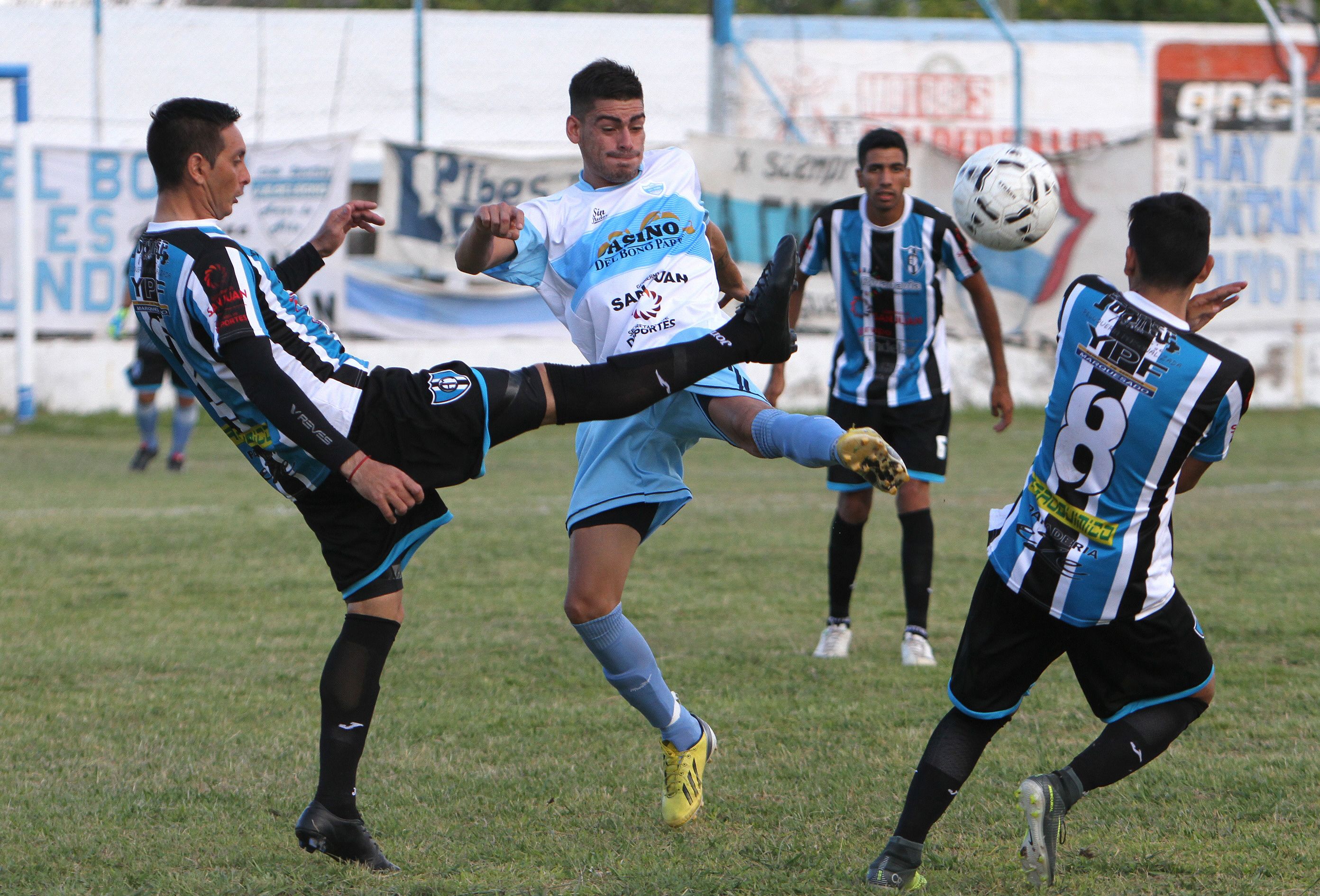 Áspero. Del Bono y Marquesado animaron un duro partido, que tuvo muchos goles, varios errores defensivos y bastante pierna fuerte para imponer presencia.