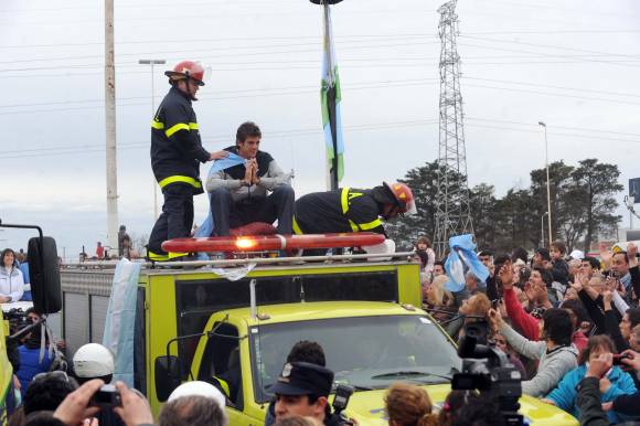 Los tandilenses esperaban la llegada de Del Potro a su ciudad natal, en la entrada de Tandil, sobre la ruta provincial 30 con una caravana que lo paseará por distintas partes de la ciudad.