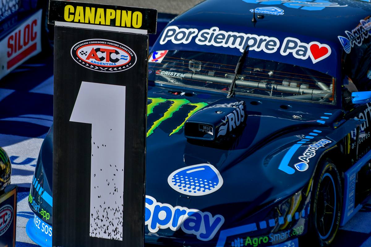 El piloto arrecifeño Agustín Canapino (Chevrolet) le hizo hoy un sentido homenaje a su padre, Alberto, histórico preparador fallecido días atrás con Covid-19, y logró la pole position para la primera carrera del calendario 2021.