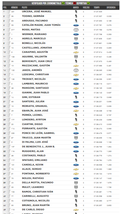Con este resultado, Della Motta ocupará el puesto 13 en la salida de la tercera serie que se disputará mañana domingo a las 10,30, mientras que Urcera estará al frente de la primera, que comenzará a las 9,40.