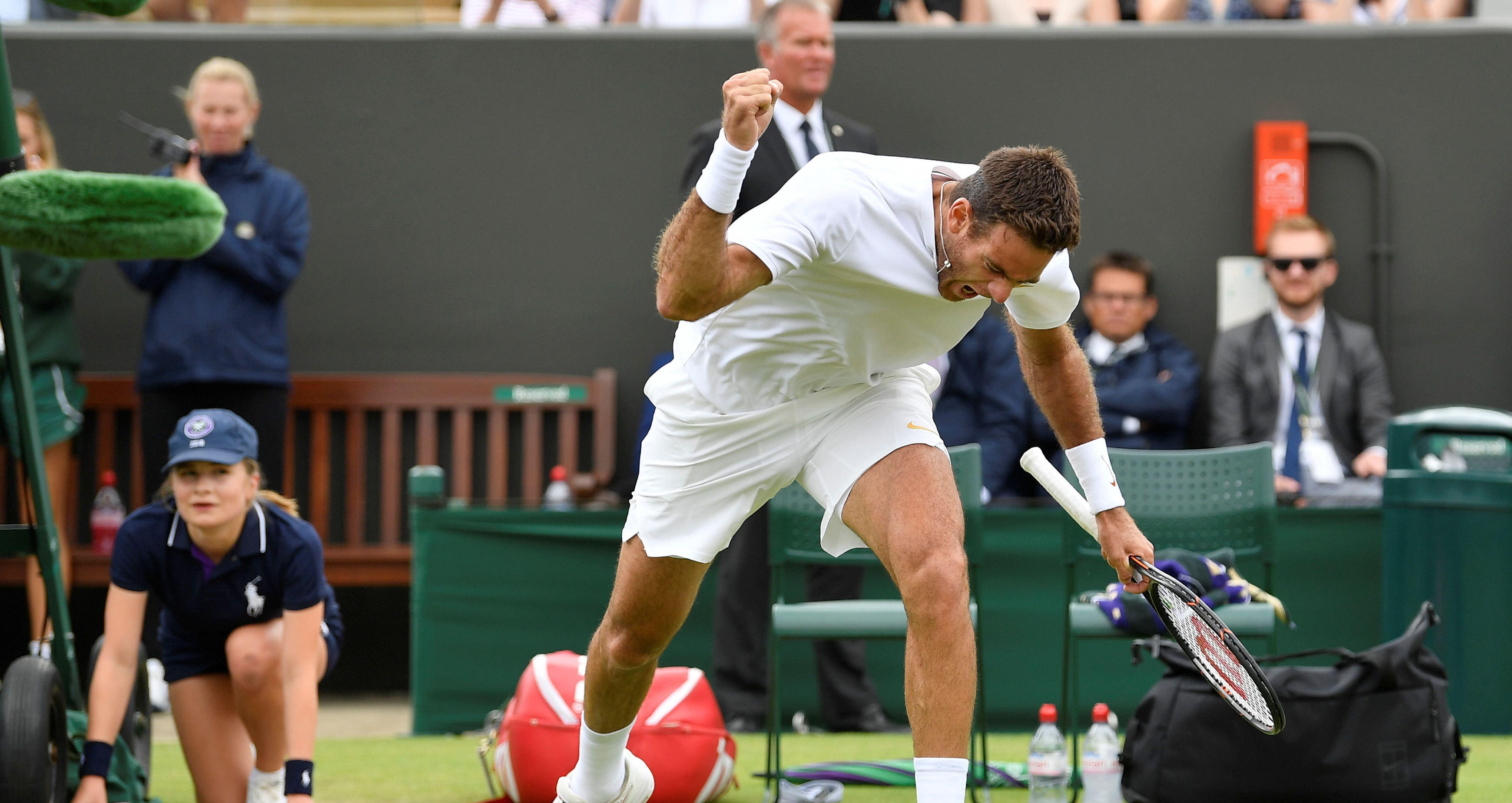 Con furia. Del Potro celebró con intensidad su pase a cuartos de final en Wimbledon tras vencer a Giles Simon en un partido que se extendió dos días, debido a que el lunes había sido suspendido por falta de luz.