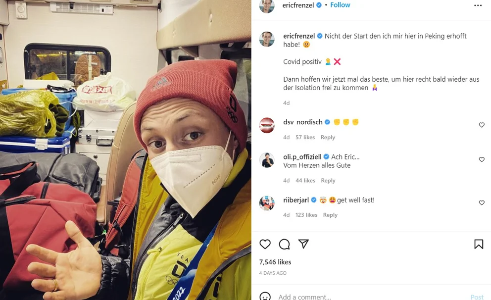 Eric Frenzel, tres veces campeón olímpico en el combinado nórdico, dio positivo. Poco después, el jefe de la delegación alemana Dirk Schimmelpfennig criticó las condiciones “irracionales” de vida en el hotel de cuarentena.