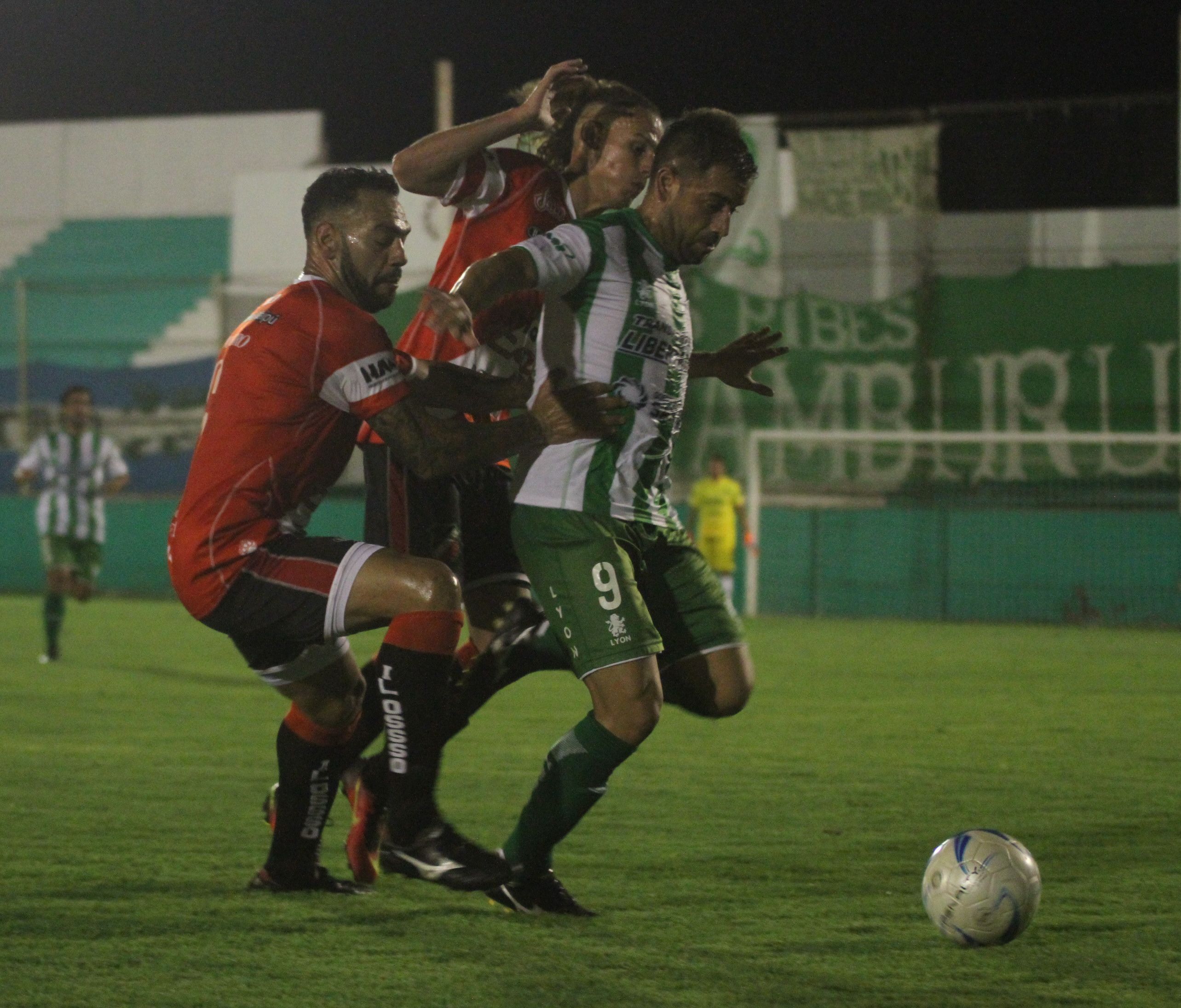 Controlado. Silvio Prieto, emblema de Desamparados, es rodeado por varios adversarios de Maipú. El Mago fue titular y tuvo un par de chances, aunque no anotó.
