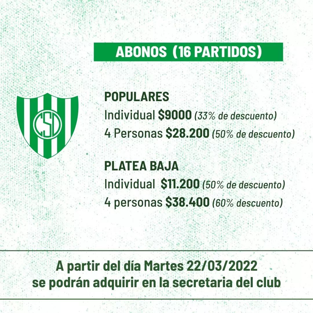 Además, el club también lanzó una serie de beneficios para quienes adquieran los abonos para presenciar los 16 partidos que Desamparados disputará en San Juan. Los mismos tienen descuentos que van hasta el 60% para quienes compren cuatro abonos y hasta se pueden adquirir en cuotas. Se venden desde este martes en la Secretaría del club. Los socios al día pueden retirar sus entradas sin cargo desde el jueves por el club.