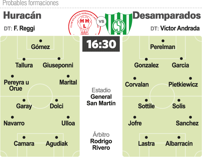 Pasó la fecha libre y para Desamparados es el momento de ganar. Con esa urgencia, Sportivo se jugará una carta más que pesada en cancha de Huracán Las Heras en el marco de la la sexta fecha de la Zona 3 del Federal A. Será a partir de las 16.30 sabiendo que es el momento de festejar la primera victoria para no perder pisada a los que mandan y salir del incómodo momento de estar cerca de las posiciones de descenso. En lo futbolístico, Andrada apostará la formación que utilizó en San Luis con el ingreso de Jonatan Lastra como delantero acompañando a Wilson Albarracín. Mientras que en defensa, Gabriel González será el compañero de zaga de Federico García. Sportivo necesita ganar. Viene de empatar contra Racing de Córdoba como local y de visitante aún no conoce la derrota porque sus salidas fueron empates tanto en Catamarca como en San Luis. Pero por lo que generó y lo que armó estar hoy a 6 puntos de la punta preocupa y mete presión en todo sentido. Un sábado para volver a sentirse que puede dar.
