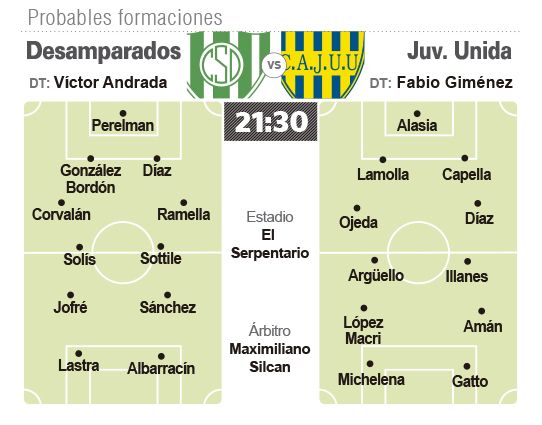 Para Desamparados, el objetivo es claro: clasificar. Está entre los 4 primeros y el lote parece haberse cortado por lo que metiendo el partido de esta noche contra Juventud, tendrá dado un paso más hacia ese gran primer objetivo de la temporada. De local, el equipo de Andrada viene de un triunfo ante San Lorenzo de Catamarca y de un empate ante Estudiantes de Río Cuarto. Hace rato que no pierde pero necesita consolidar un perfil futbolístico que lo acomode a sus necesidades. Recupera nombres claves como Lastra, Corvalán y Albarracín para buscar una victoria más.
