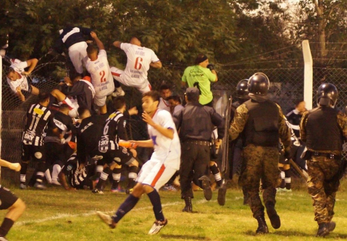Desde el primer tiempo el partido tuvo que interrumpirse por la caída de bombas de estruendo, pero los locales "dieron garantías" de que no iba a pasar a mayores y el partido continuó. Pero en la segunda etapa los hinchas rompieron el alambrado, se metieron a mansalva en la cancha y tomaron a golpes a los jugadores visitantes, que tuvieron que trepar un alambrado para poder escapar.
