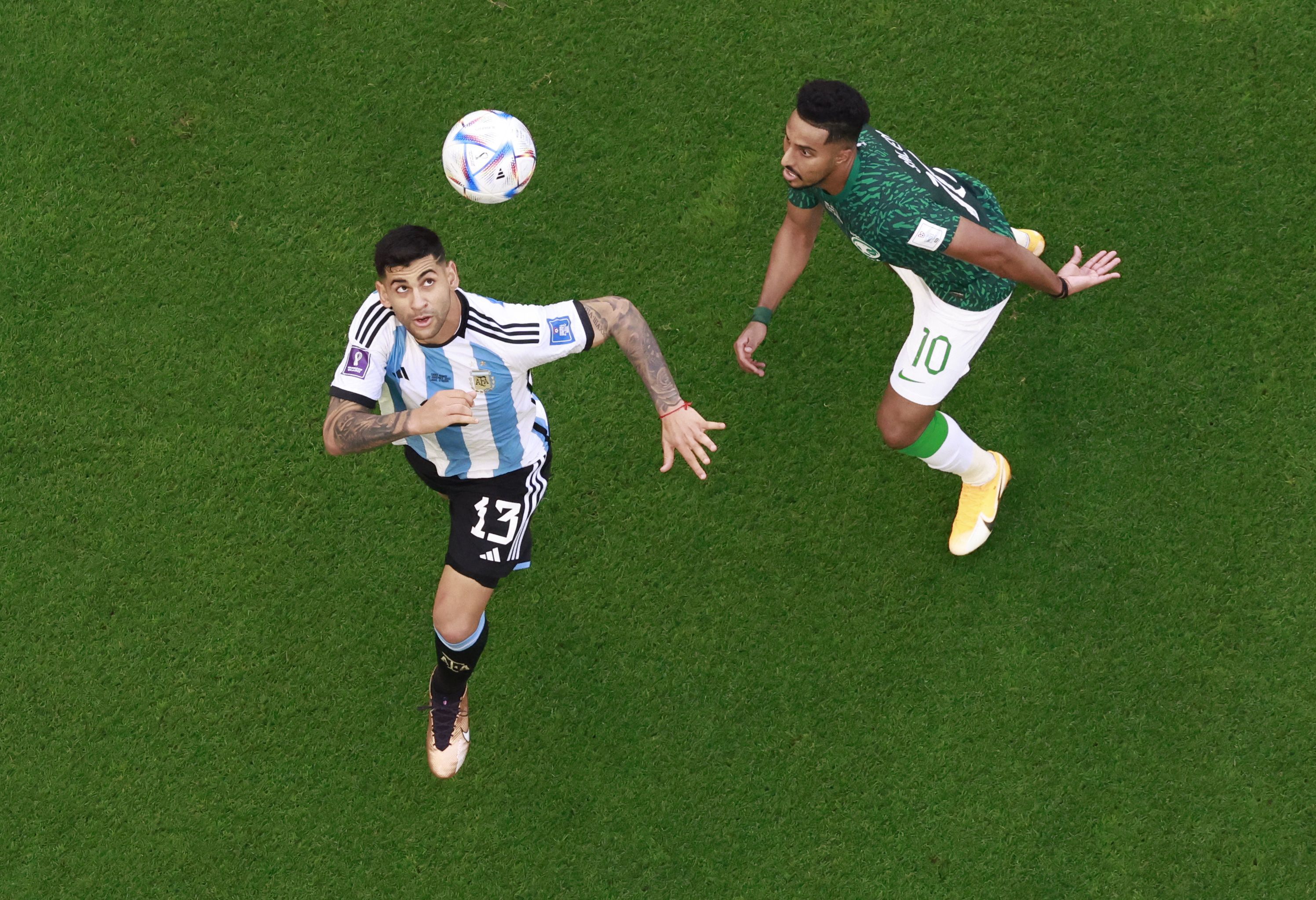 Por una desatención defensiva llegó la igualdad de Al Shehri, que un cruce tardío de "Cuti" Romero no pudo evitar. Eso desató los peores minutos de Argentina en el partido.