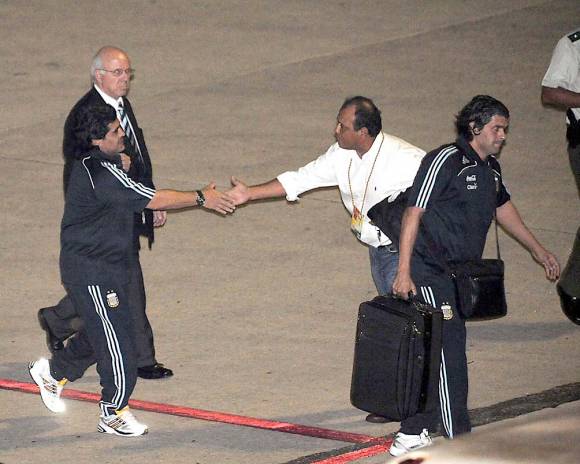Cuatro años después, con Maradona como entrenador del equipo argentino, una hora antes de que llegue el plantel profesional en la puerta del hotel Yotaú ya había 150 personas, tres camionetas de la policía, varios patrulleros y hasta un carro de bomberos.