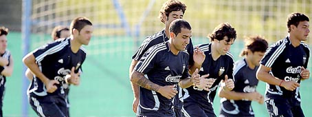 Luego llegó el momento de los trabajos con pelota, una práctica de fútbol en espacio reducido, de la que no participaron Verón (traumatismo en el pie derecho), Demichelis y Samuel, estos últimos con fatiga muscular, pero los tres estarán en condiciones de jugar (salvo el defensor del Bayern Munich, por estar suspendido) ante Venezuela.