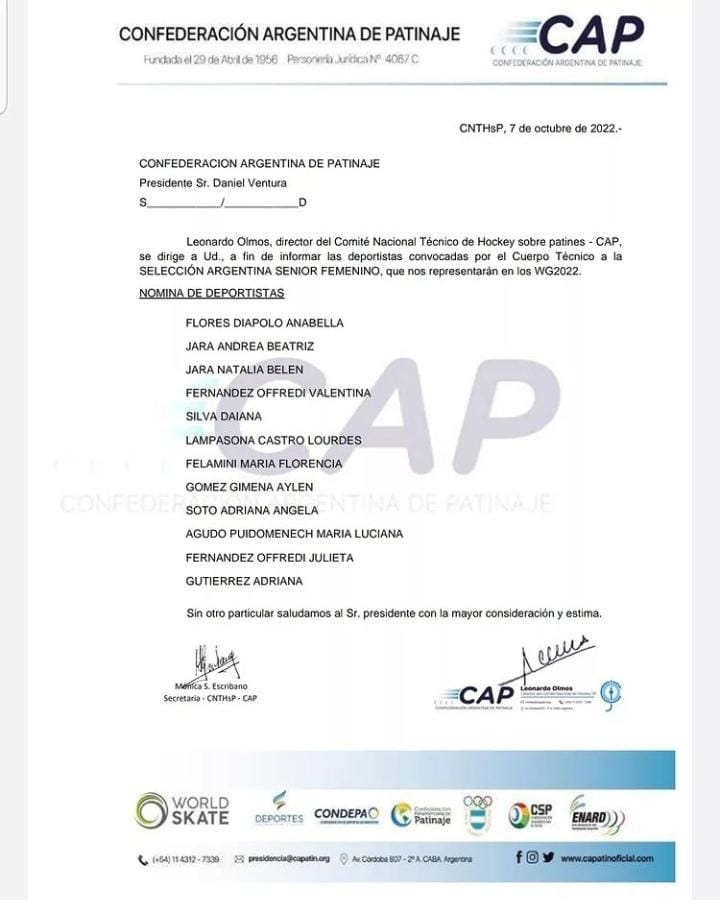 Cada vez falta menos para que comiencen los World Skate Game 2022 que se desarrollarán en San Juan y en Buenos Aires. Y en esta oportunidad, desde el Comité Técnico de hockey sobre patines, dieron a conocer a las elegidas por Leonardo Olmos para vestir la celeste y blanca en el Mundial, en la rama femenina.