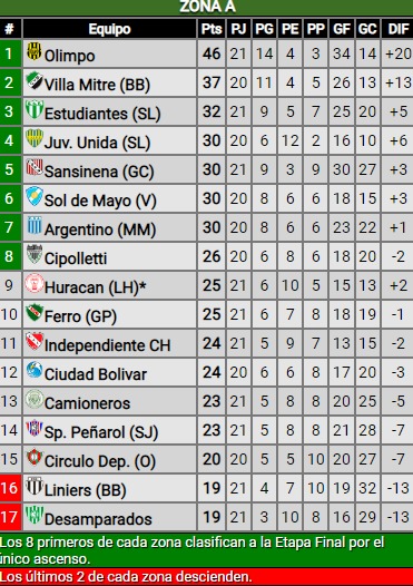 Olimpo-Huracán Las Heras (15.30) Árbitro:Joaquín Gil (San Pedro)