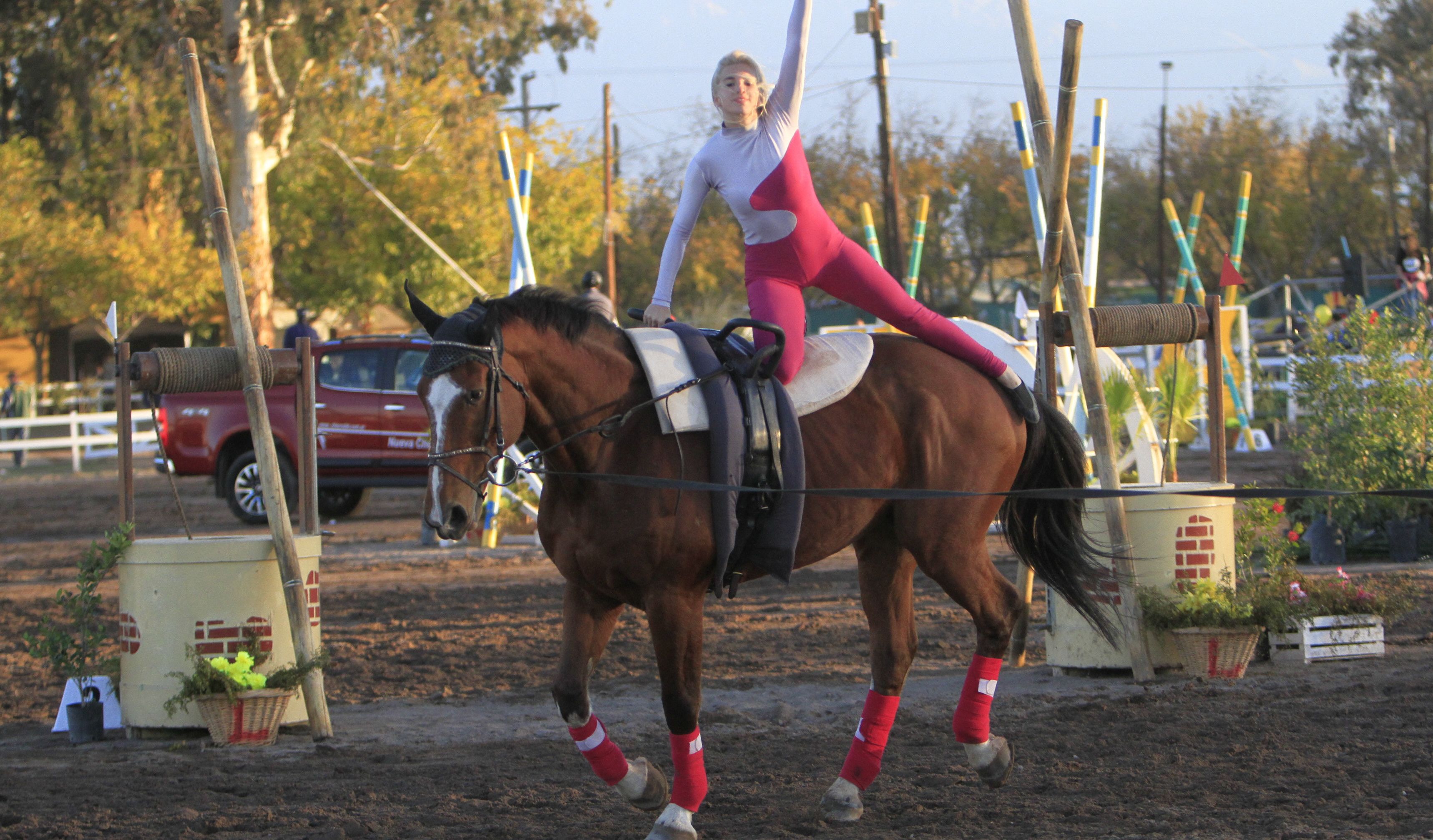 La escuelita de volteo es dirigida por Marlen Moliens y funciona en la capital riojana. Llegaron a esta edición del Cordillerano con 8 alumnos de salto y 4 que realizaron las exhibiciones de volteo que se robaron los aplausos de todos los presentes por las maniobras que realizaban arriba de los caballos. Sobre todo las más pequeñas, que con apenas 5 años se lucieron con sus malabares y formas realizadas arriba de los equinos.