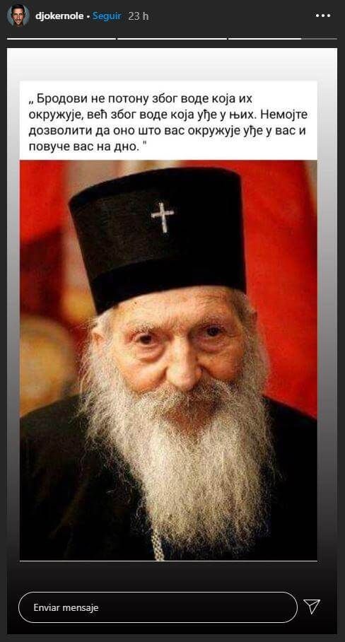 "Los barcos no se hunden por el agua que los rodea, sino por el agua que les entra. No permitas que lo que te rodea entre en vos y te arrastre al fondo", señala el mensaje que pertenece a de Pablo II, 44.º Patriarca de la Iglesia ortodoxa serbia.