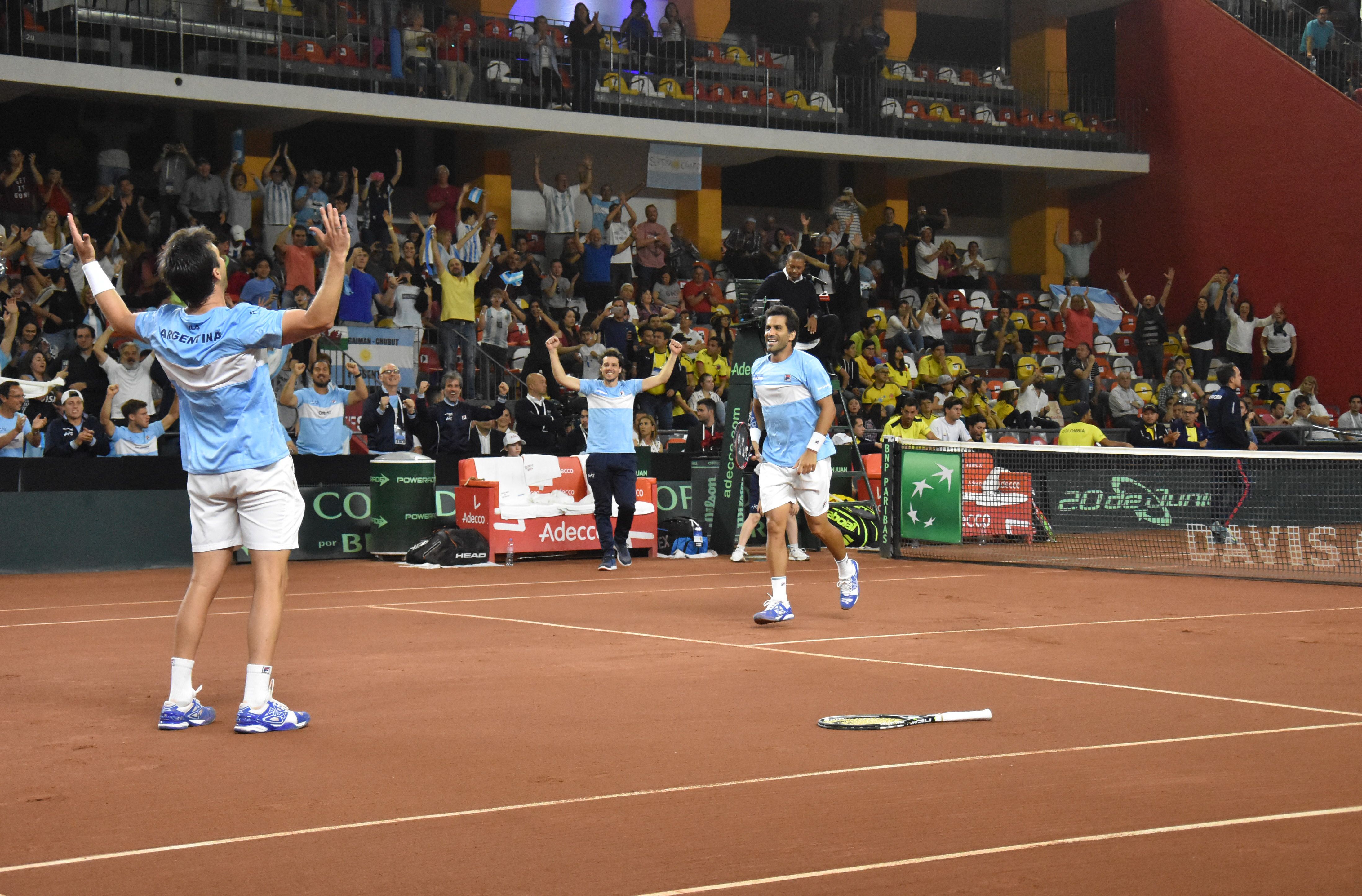 "San Juan no conoce la derrota", dijo Horacio Zeballos tras finalizar el partido y el elogio desató los gritos en el estadio. El doblista le dio un guiño a la localía de Copa Davis al recordar el triunfo en abril ante Chile y celebrar la victoria ayer frente a Colombia, tras un extenso partido de más de cuatro horas que resolvió el cruce 3-0. El dobles argentino se impuso por 6-4, 7-6 (3), 6-7 (4), 4-6 y 6-4 y de esta manera ganó anticipadamente la serie en el Aldo Cantoni, pues quedan jugarse hoy los dos partidos de singles. Con este resultado, Argentina se aseguró una plaza para quedar como sembrado en el sorteo de la clasificación de la nueva Davis del año próximo, lo que presume enfrentar a rivales menos fuertes.