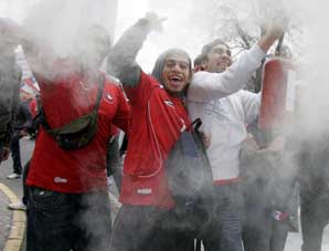 En Santiago, los puntos que reunieron más aficionados fueron la Plaza de Constitución, frente a La Moneda, el Paseo Ahumada y la Plaza Italia, en el área céntrica de la capital chilena.
