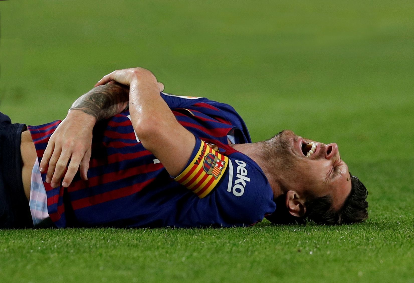 Cayó con todo el peso de su cuerpo y el movimiento anormal de su codo inmediatamente provocó conmoción. Los gritos de Messi fueron elocuentes y con el transcurso de las horas se confirmó la gravedad de la lesión. Barcelona anunció en un parte médico oficial que Lionel Messi sufrió la fractura en el radio del brazo derecho, lo que lo dejará tres semanas fuera de las canchas. De esta manera, entre los seis partidos ausente se perderá incluso el clásico del fútbol español ante el Real Madrid, la semana próxima.