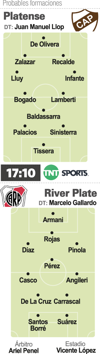 River visitará hoy al recién ascendido Platense, por la 3ra fecha de la zona 1 de la Copa de la Liga Profesional de Fútbol. Se enfrentarán desde las 17.10, en el estadio Ciudad de Vicente López, con el arbitraje de Ariel Penel (TV: TNT Sports). A las 19,20, Racing Club, en un inicio con apenas un punto sobre seis,visitará a Estudiantes, que ganó en sus dos presentaciones (TV: TNT Sports) y las 21,30, Boca recibirá al recién ascendido Sarmiento de Junín por el Grupo "B" (TV: Fox Sports Premium).