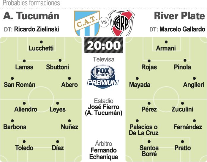 En River, el "Muñeco" Gallardo no contará con Montiel, quien sufrió una distensión en el cuádriceps izquierdo y en su lugar seguirá el uruguayo Camilo Mayada, mientras que presenta varias dudas en el mediocampo.