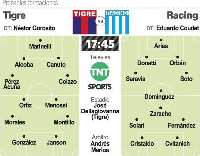 Racing eliminó a Estudiantes, igualó los dos partidos haciendo valer el gol de visitante, pero no está jugando bien y apenas le ganó a Belgrano en los pasados seis encuentros de los cuales empató cinco. Tigre accede a esta eliminatoria con el descenso consumado, pero con Gorosito se transformó en un equipo que apuesta a la ofensiva y que desarrolla un juego atractivo, totalizando desde la llegada del DT 6 triunfos, 2 empates y un revés, con un 74 por ciento de efectividad.