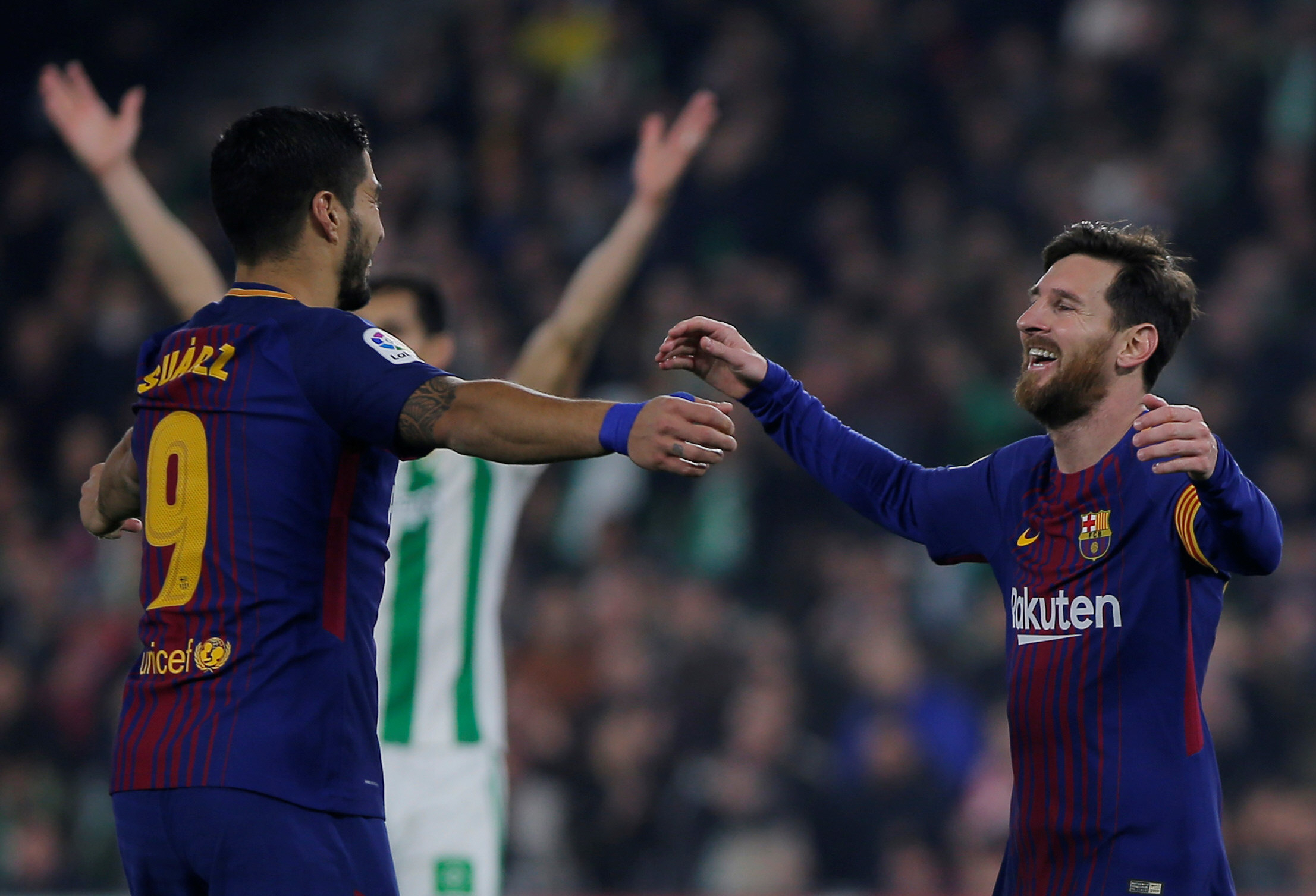 El astro argentino Lionel Messi marcó ayer dos tantos en la goleada del líder Barcelona sobre Betis por 5 a 0, como visitante, en un encuentro correspondiente a la 20ma fecha de la Liga Española de fútbol.