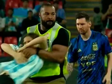 En ambos intentos de las hinchas que ingresaron al campo de juego fueron interceptadas por la seguridad del estadio y sabotearon la chance de llegar al capítán de la Argentina.
