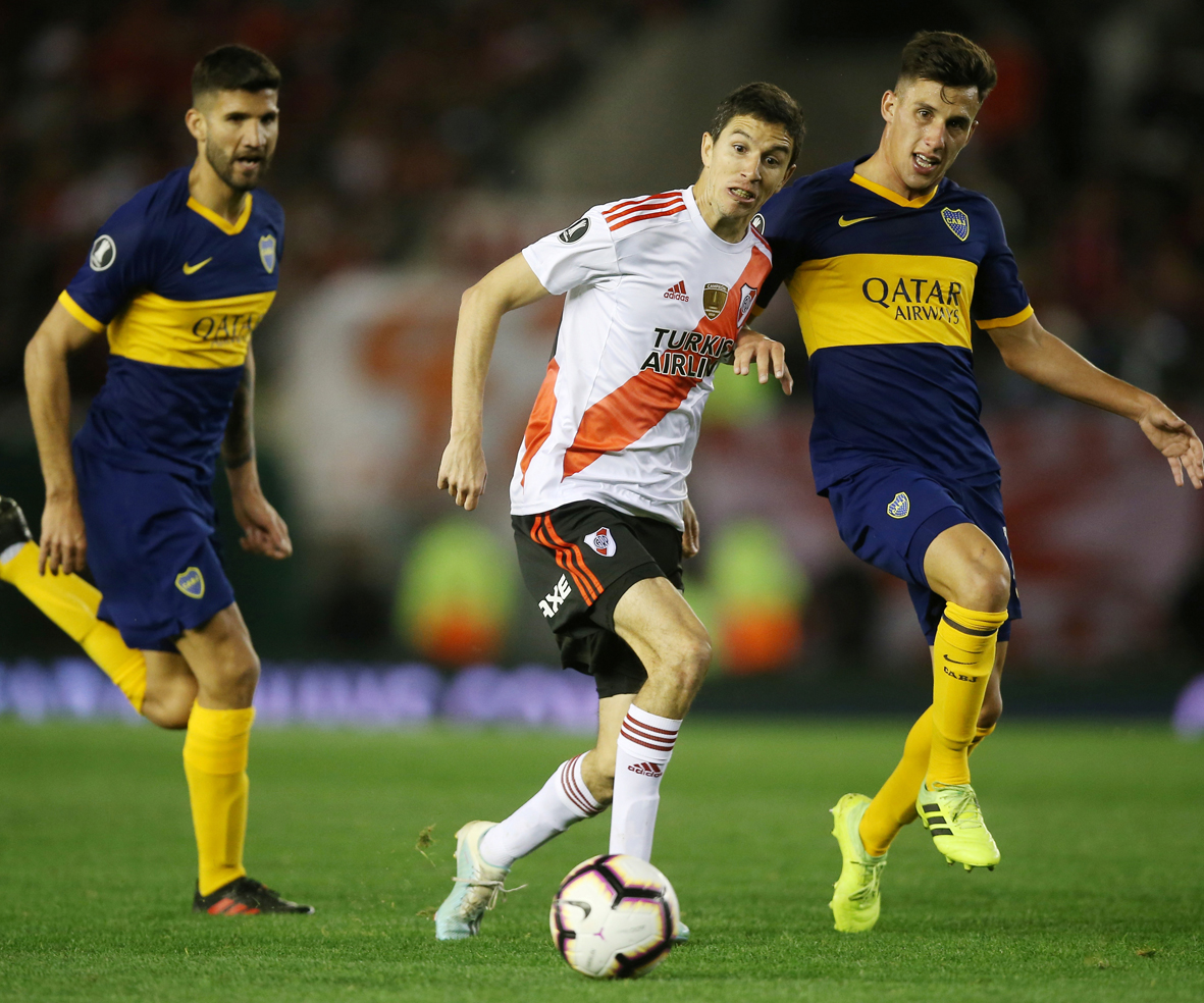 Un segundo, una decisión, un clásico. Así de finito suele ser el margen de definición de estos megapartidos y a River le alcanzó con eso. Con la polémica del VAR, chispazos de su reconocido funcionamiento colectivo y la vocación por ir a buscarlo, el equipo de Gallardo se quedó con la primera semifinal, pero desde lo futbolístico, todo está por verse y dentro de tres semanas puede que pase cualquier cosa. Es que Boca, lejos de jugar a defenderse, terminó variando su postura positivamente por ese polémico penal en el amanecer del partido, jugando lejos de su área, presionando la zona de creación de River y creando varias situaciones de gol que con más contundencia podrían haber resuelto de otra manera la primera semifinal en el Monumental. Todo, absolutamente todo, está por verse. El comienzo alteró todo. Porque ese penal de Mas a Borré no hizo más que cambiar los libretos y hasta los roles de los 22 protagonistas. River, que tenía diagramado su clásico partido de alta presión, de asfixia constante, de extrema movilidad, de pronto se encontró con esos espacios que Boca iba a negárselos pero no pudo aprovecharlos. Y Boca que pensó un partido de retranca, de achicar para atrás, de pronto tuvo que salir a jugarlo en campo contrario, arriesgando desprotegido. Así, en esos primeros 45" la mínima luz de ventaja fue de River, pero Boca estuvo a centímetros de haberlo empatado con ese gol increíble que perdió Capaldo.