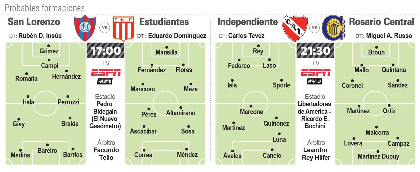 San Lorenzo, de floja campaña donde por ahora no ganó, recibirá al ascendente Estudiantes de La Plata, siendo ambos equipos participantes de la próxima Copa Libertadores. El partido se jugará desde las 17 en el Nuevo Gasómetro, con el arbitraje de Facundo Tello y TV a cargo de la señal ESPN.