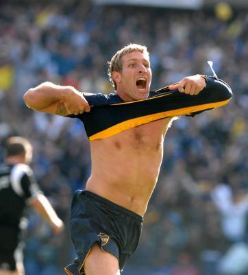 Martín Palermo, con 35 años cumplidos el pasado 7 de noviembre, no había tenido una situación propicia para abrir el marcador. Y entonces se la inventó. Iban 14 minutos del complemento y hasta ese momento Boca había tenido más tiempo la pelota, pero no había generado más que un par de situaciones de peligro. El Titán recibió una pelota a 35 metros del arco, se dio vuelta y como no tenía una marca encima, tuvo el tiempo para decidir sacar el remate. Que fue potente y pegado al palo más alejado del arquero Vega. Delirio en la tribuna de Boca y en el jugador, que se sacó la camiseta mientras corría para festejarlo con todo el mundo azul y amarillo. Un golazo que le permite también demostrar que puede seguir siendo el nueve titular, con Figueroa y Viatri esperando, y además negociar con mejor respaldo la renovación de su contrato que finaliza el 30 de junio. Un golazo que lo ayuda seguir haciendo historia, porque fue su gol número 13 en superclásicos, y así comparte el segundo puesto histórico, junto a Oscar Más, Carlos Morete y Paulo Valentín, sólo detrás de Angel Labruna, quien marcó 22.