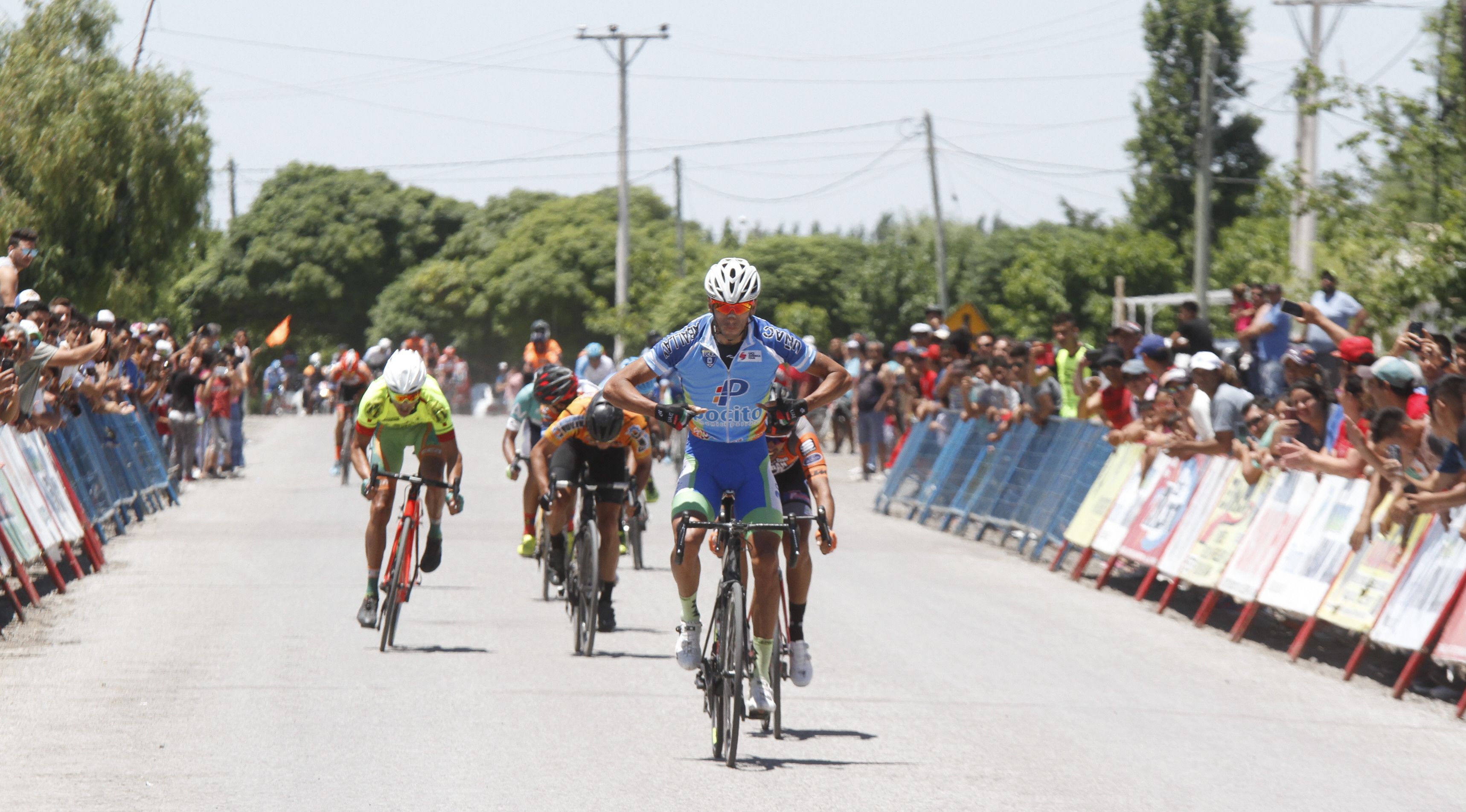 Dotti (a la derecha de la imagen con camiseta de color flúor) viajo siempre resguardado. Así quien quisiera atacarlos debía rodar muy fuerte. Doblete en ganar las últimas etapas logró ayer Gerardo Tivani. El pocitano, al igual que en la Doble Chepes, dibujó una sonrisa en los seguidores de su equipo.