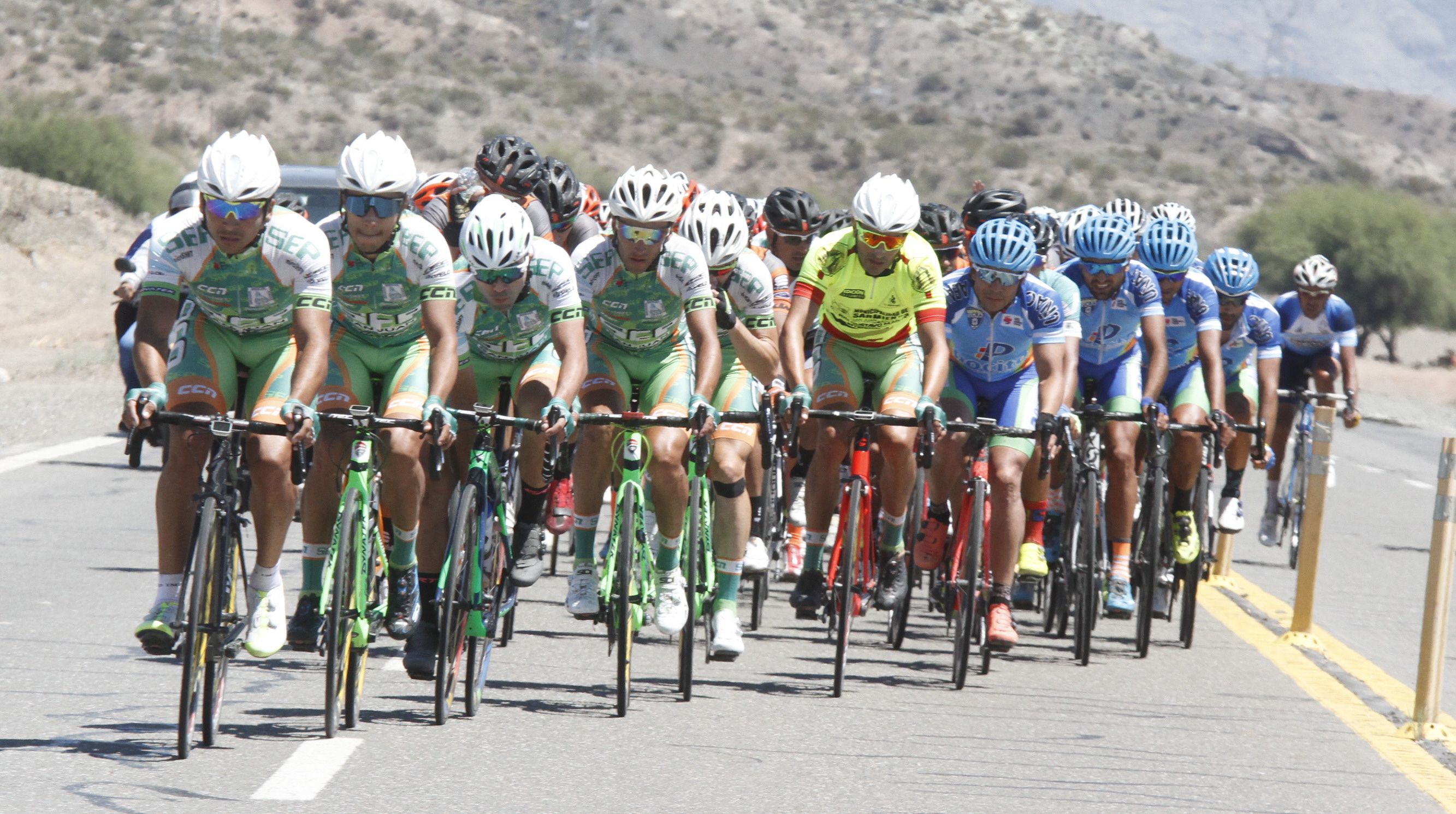 Cuidando al líder. El equipo completo del SEP-San Juan se puso a la cabeza del pelotón e imprimió un ritmo demoledor, especialmente en Ruta 40, al Sur, cuando el viento les pegaba de frente.