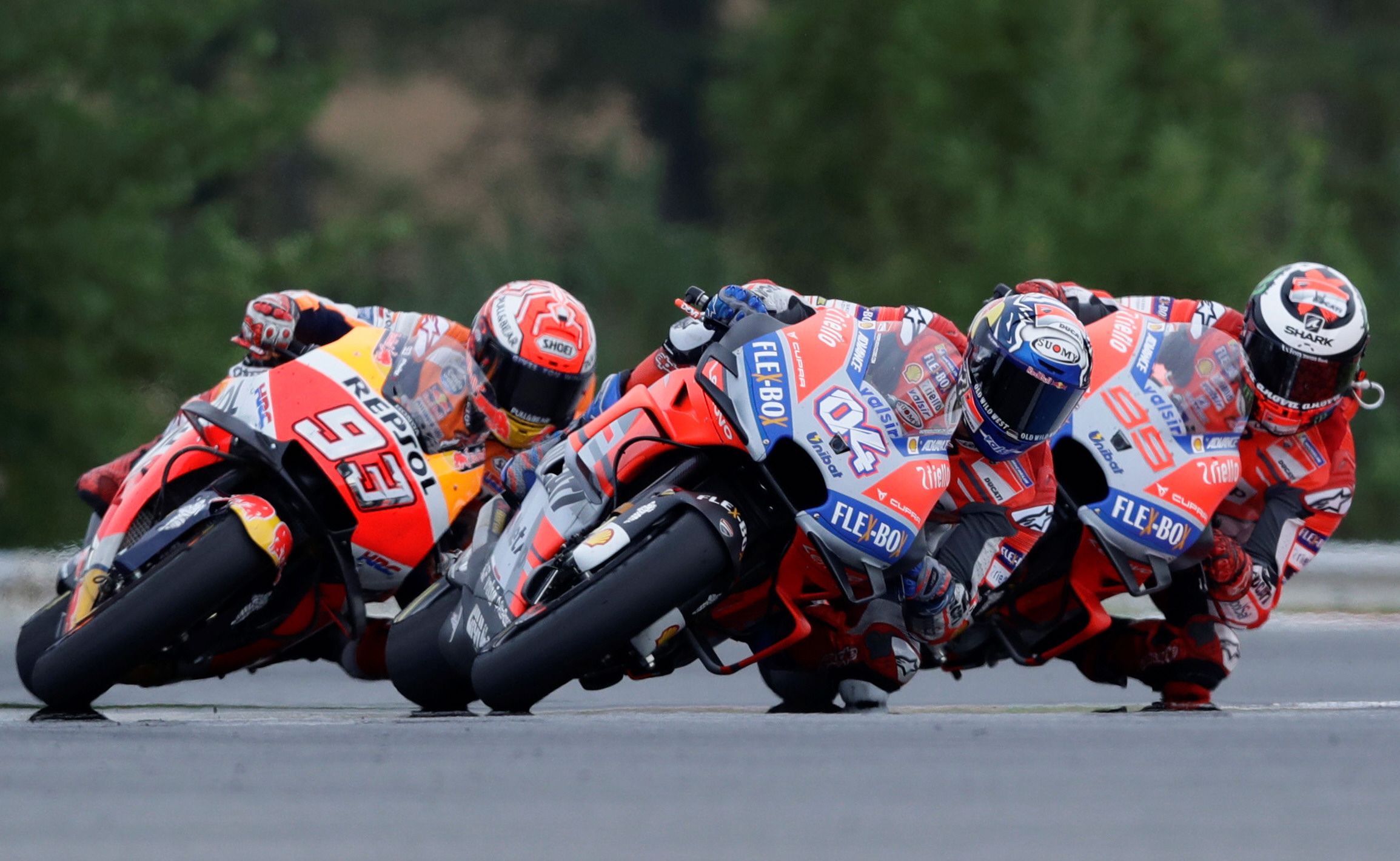 El italiano Andrea Dovizioso (Ducati) doblegó a los españoles Jorge Lorenzo (Ducati) y Marc Márquez (Honda) en el Gran Premio de la República Checa de MotoGP, en el que el portugués Miguel Oliveira (KTM) y el italiano Fabio di Giannantonio (Honda) ganaron en las otras respectivas categorías.