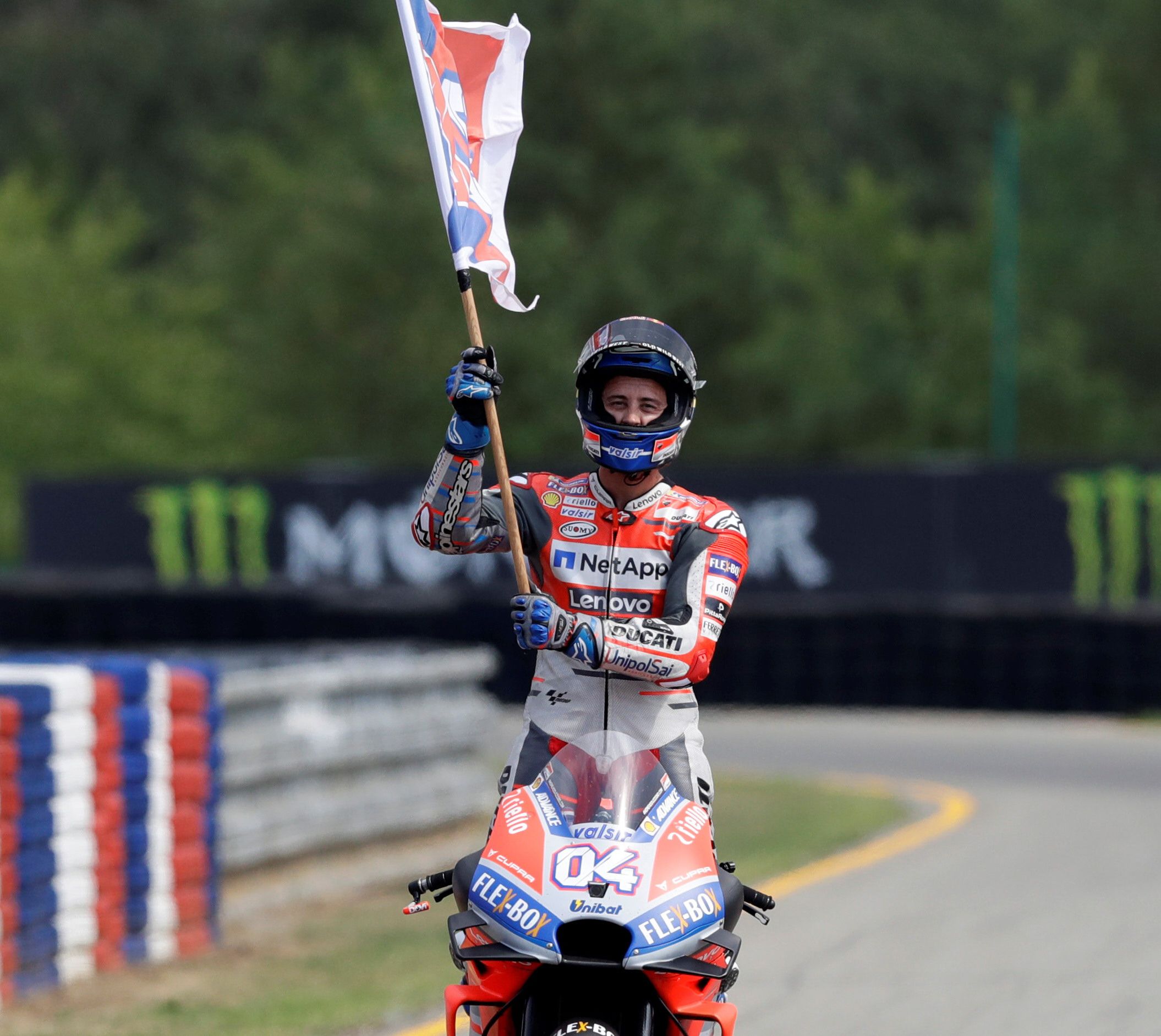 En ganador. El italiano paseando con su Ducati y la bandera.