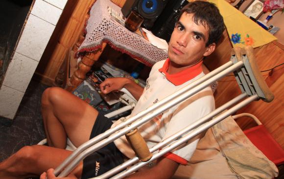 Acompañado por sus padres, Amelia Córdoba y Juan Adolfo Barón, su hermano Omar y su novia Cintia Farías, el ciclista que el año pasado festejó como un triunfo su cuarto lugar en la Doble Difunta Correa, se resignó a tener que escuchar por radio la carrera. ‘En el hospital me dijeron que tenía que estar 20 días moviéndome sólo lo indispensable, ir al baño con muletas y cuidarme de no hacer ningún esfuerzo‘, explicó. ‘Parece que no tuviera nada‘, agregó mientras se levantaba la remera y mostraba la parte inferior de su torso.