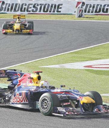 El piloto alemán Sebastián Vettel se impuso ayer en el GP de Japón de Fórmula 1, que se disputó en Suzuka, y logró con su coequiper, el australiano Mark Webber, el 1-2 para el equipo Red Bull. El español Fernando Alonso (Ferrari) completó el podio de una carrera que debió ser neutralizada en una oportunidad en los primeros minutos tras múltiples despistes.