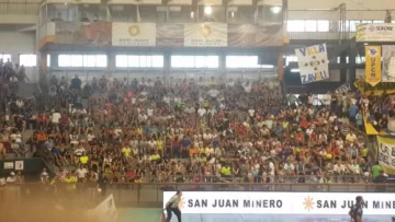 San Juan, 11 de abril.- Imponente. Así lució el estadio Aldo Cantoni, en el marco de la primera final de la Liga Nacional A1 entre UPCN y Bolívar. El público sanjuanino llegó en gran número y, aunque las populares mostraron algunos claros, las plateas estuvieron totalmente repletas para alentar al Gremial.