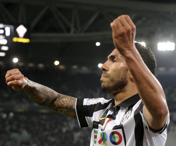 El delantero argentino Carlos Tévez convirtió dos de los tres goles con los que Juventus venció ayer, de local, a Fiorentina por 3-2, en un partido por la 33ra fecha de la Liga de Italia de fútbol, y quedó a un paso del tetracampeonato.