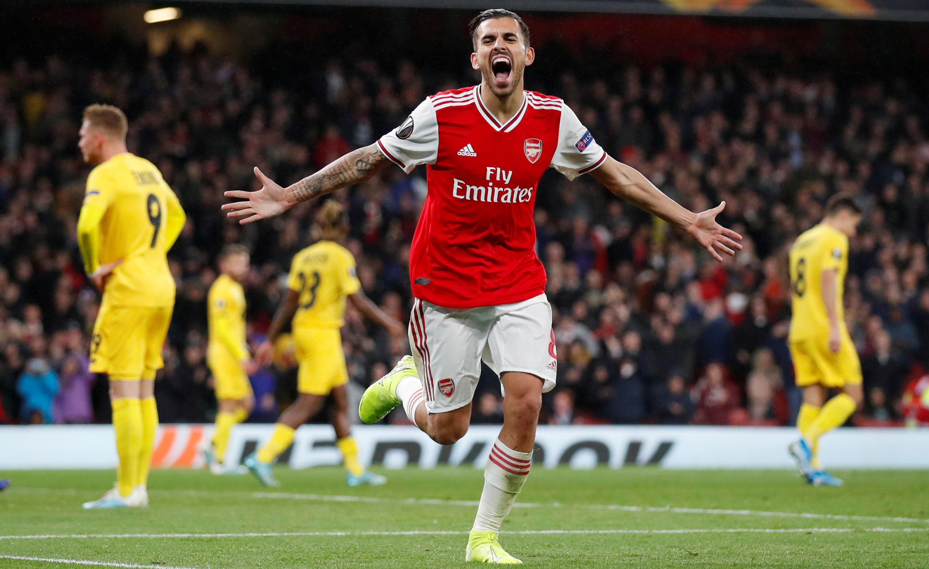 Cuarteto. Arsenal fue contundente ante el Standard de Lieja. Dani Ceballos celebra el cuarto tanto de la goleada.