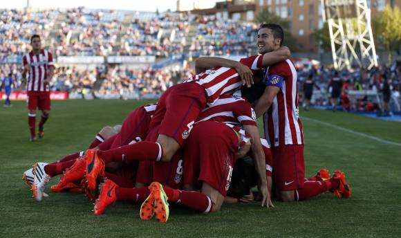 Atlético de Madrid, equipo dirigido por el argentino Diego Simeone, derrotó ayer a Getafe por 2-0, como visitante, y se afianzó como líder de la Liga española al tomar tres puntos de ventaja sobre su escolta Real Madrid y cuatro respecto de Barcelona, último campeón, cuando restan cinco fechas para el final.