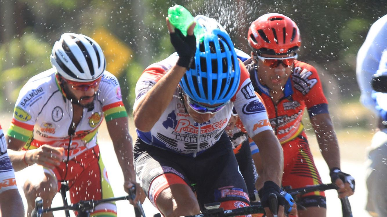Emiliano Ibarra (Puertas de Cuyo) intenta apaciguar el calor con una botella de agua. La fuga que conformaron junto a su compañero Dani Díaz, Francisco Monte (Ureña), Ricardo Escuela (AVF), Gerardo Tivani (Pocito) y Facundo Cattapan (Rawson) les pasó factura y necesitaron de hidratación para renovar energías.