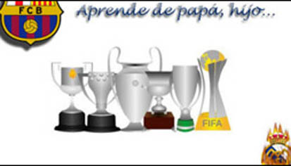 Buenos Aires, 11 de marzo.- “Aprendé de papá, hijo…”, fue uno de las frases que se podían leer en los carteles hechos por los fanáticos del club campeón de la Liga española, Copa de Campeones y Mundial de Clubes, entre otros.