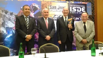San Juan, 19 de agosto.- El ministro de Turismo y Cultura, Dante Elizondo junto al ministro de Turismo de la Nacional, Enrique Meyer, presentaron oficialmente el International Six Days of Enduro 2014. En el lanzamiento también estuvo presente el presidente de CAMOD, Arturo Scalise y el coordinador general, David Eli.