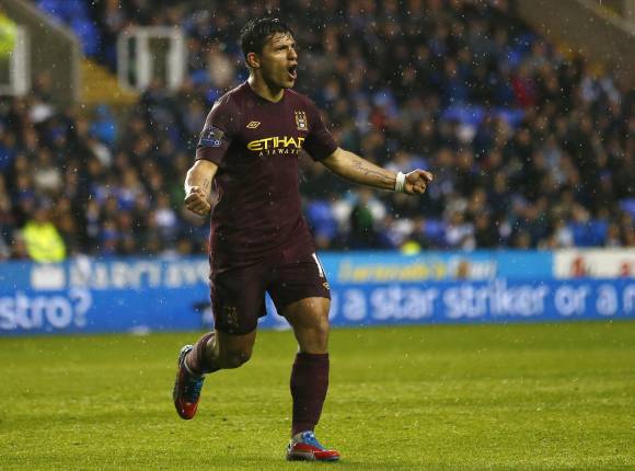 El delantero argentino Sergio Agüero marcó ayer uno de los dos goles con los que su equipo, Manchester City, le ganó a Reading por 2 a 0, de visitante, en un partido por la 37ma. y penúltima fecha de la liga de fútbol de Inglaterra.