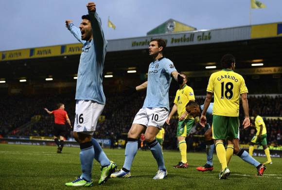 Sergio ‘Kun’ Agüero se despachó ayer con un gol y una asistencia en la victoria del escolta Manchester City sobre Norwich City por 4-3, de visitante, en el marco de la 20ma. fecha de la Premier League de Inglaterra, última de 2012. Agüero, titular al igual que su compatriota Pablo Zabaleta mientras que Carlos Tevez estuvo en el banco, resultó determinante para los ‘Ciudadanos’ porque además de su conquista y su ‘pase-gol’ también participó en la apertura del marcador en un partido que se les tornó muy complicado, sobre todo en el final. Con este resultado, Manchester City, llegó a los 42 puntos y se mantuvo a siete de diferencia del líder y clásico rival Manchester United.