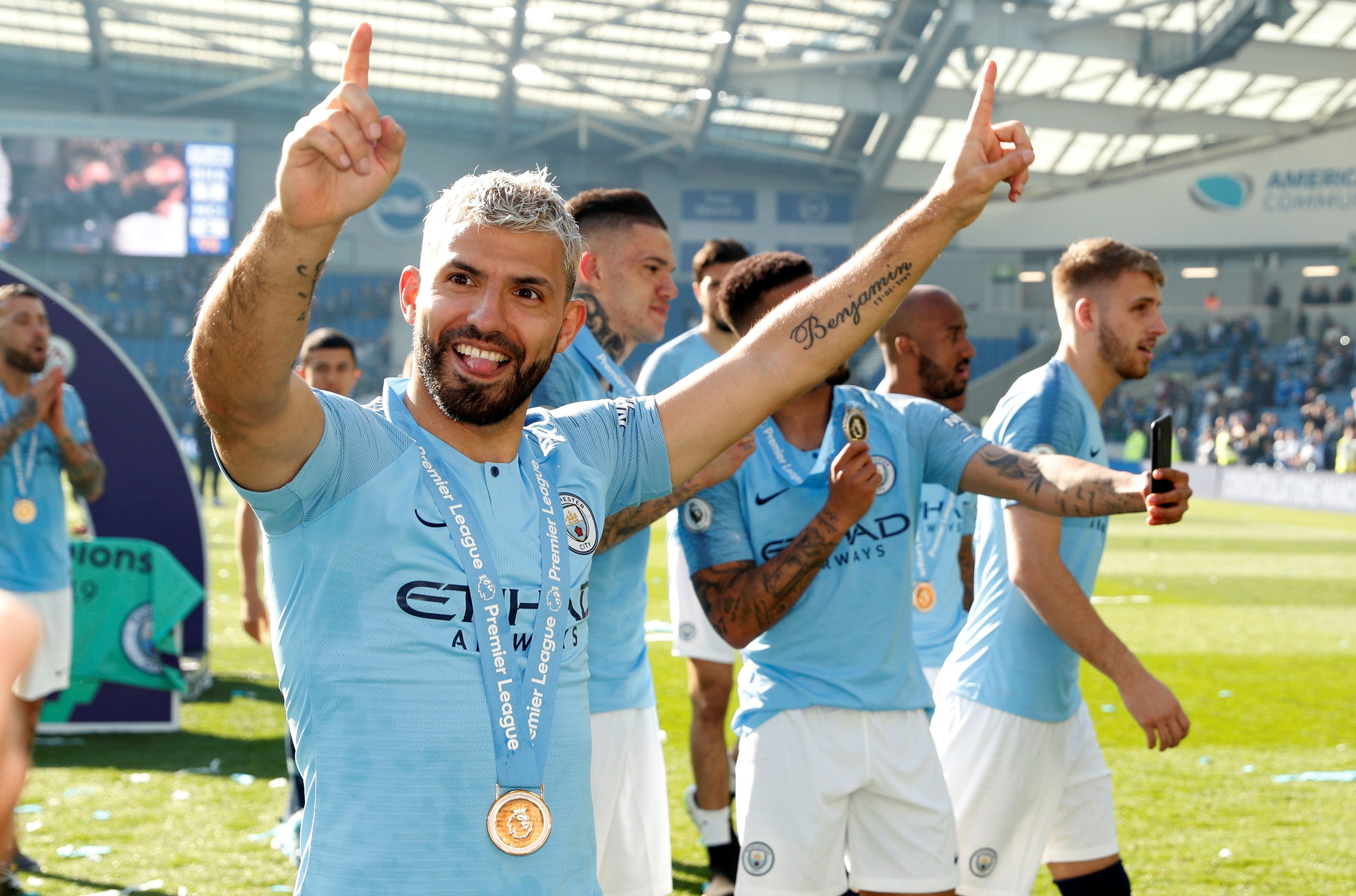 El delantero argentino Sergio "Kun" Agüero convirtió un gol en la victoria sobre Brighton 4-1, de visitante, por la última fecha y celebró la obtención de su cuarta Premier League en Inglaterra con el Manchester City. El "Kun" fue titular y volvió a ser clave para el equipo dirigido por el español Josep Guardiola ya que a los 28 minutos del primer tiempo marcó el gol del empate 1-1.El francés Aymeric Laporte, el argelino Riyad Mahrez y el alemán Ilkay Gundogan completaron la goleada del City, que por sexta vez en la historia se consagró campeón de la primera división del fútbol inglés. El defensor Nicolás Otamendi ingresó a cinco minutos del final. El City se consagró con 98 puntos, apenas dos menos que la temporada pasada. El "Kun" Agüero fue nuevamente el artillero del equipo con 21 tantos y agiganta su figura histórica en el club al que arribó hace ocho temporadas ya que además de ser su máximo goleador histórico con 164 gritos en 239 partidos y fue protagonista de los cuatro títulos de Premier.