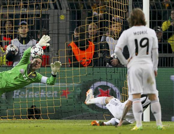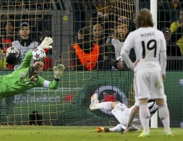 Real Madrid, de España, con el argentino Ángel Di María de titular, quien marró un penal, se clasificó ayer a las semifinales de la Liga de Campeones de Europa de fútbol aunque perdió con Borussia Dortmund, de Alemania, por 0-2, de visitante, ya que goleó por 3-0 en la ida de cuartos.