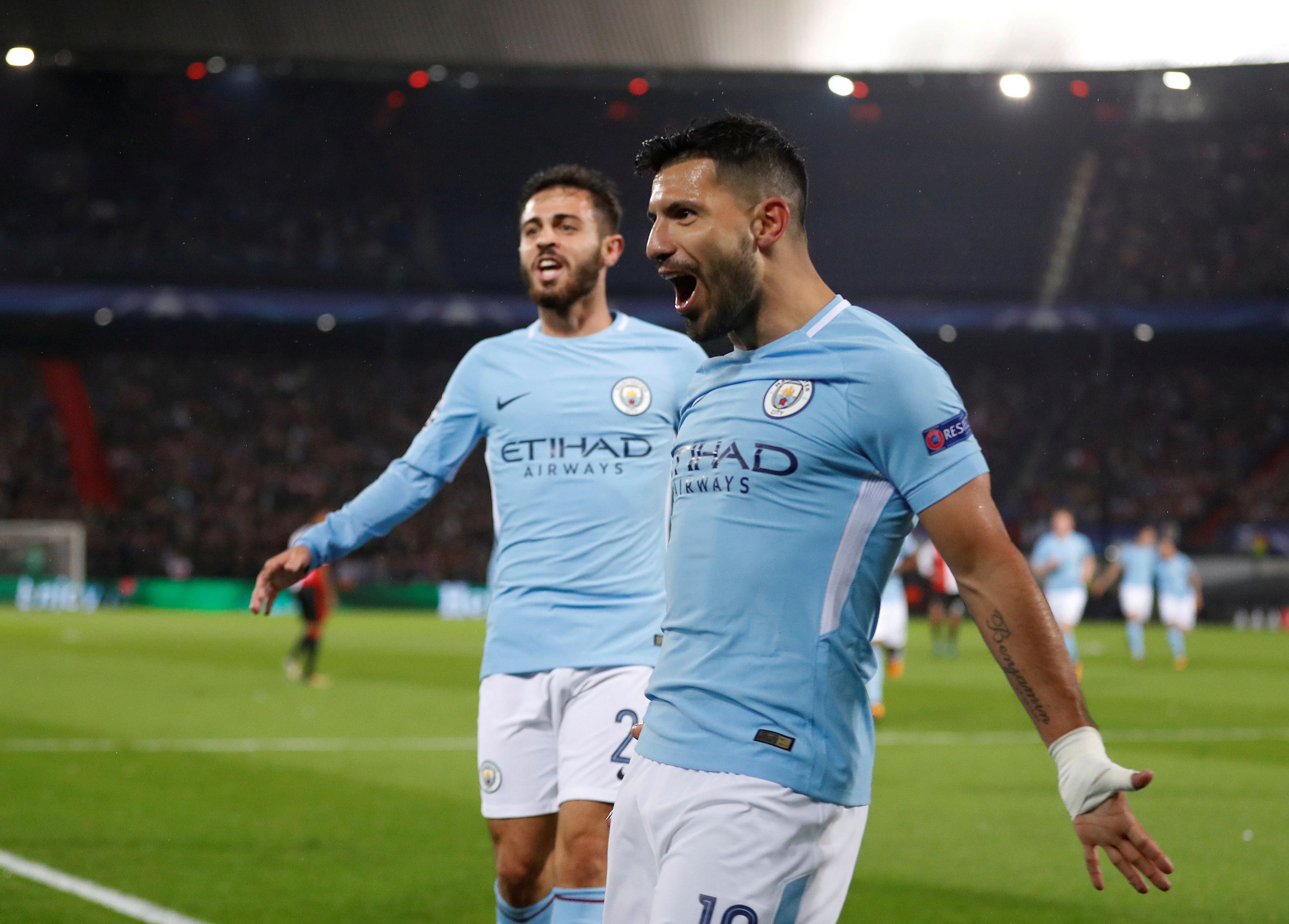 Manchester City, con el tanto apertura del argentino Sergio Agüero a los 10 minutos, goleó 4-0 a Feyenoord, líder en Holanda, en su debut en el Grupo F en la edición 2017/2018 de la Liga de Campeones de Europa. El resto de los goles para la victoria de los "ciudadanos", que tuvieron entre los once iniciales a Nicolás Otamendi, los anotaron el defensa inglés John Stones (2m Pt y 17m St) y el delantero de la selección brasileña Gabriel Jesús (25m Pt).